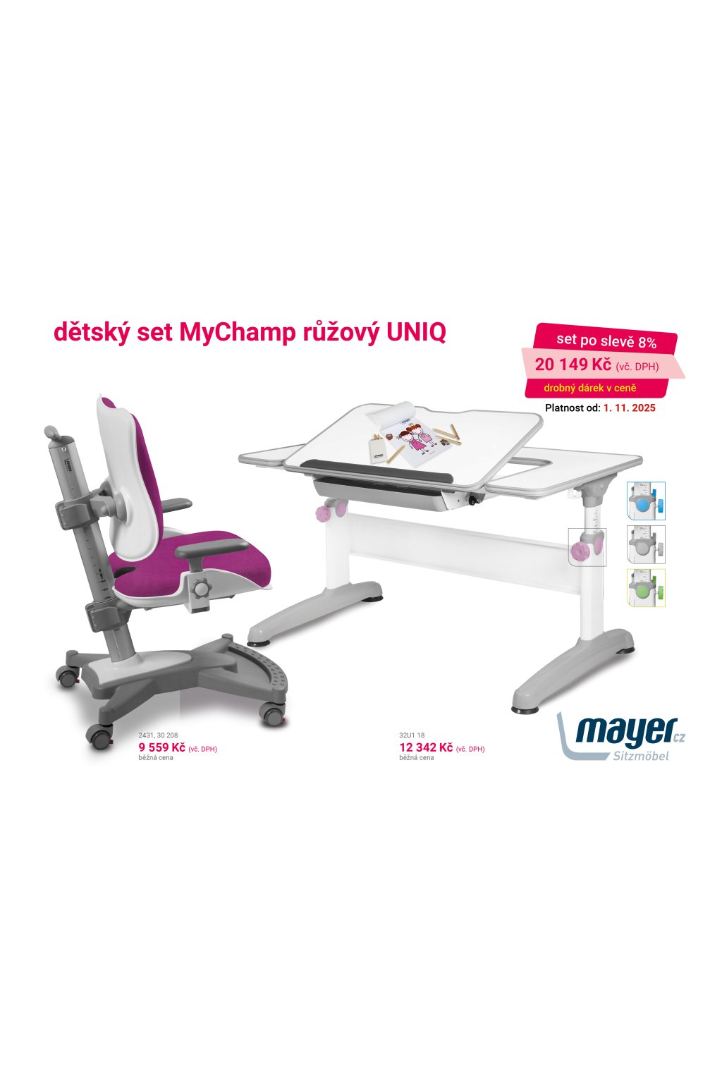 Dětský set – židle MyChamp růžový a stůl UNIQ