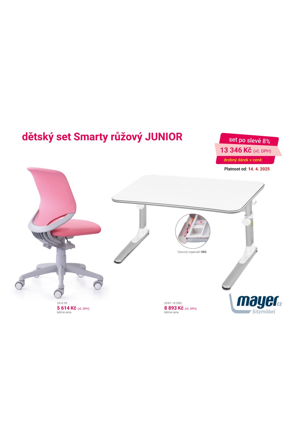 Dětský set – židle SMARTY růžová + stůl JUNIOR s výsuvným oranizérem