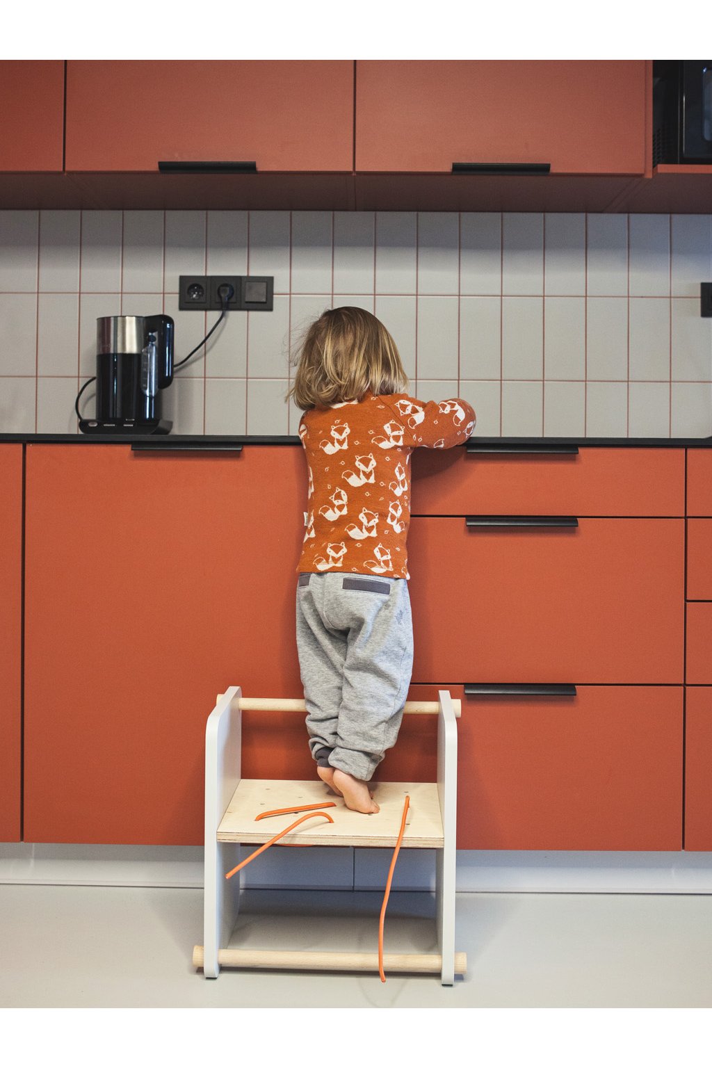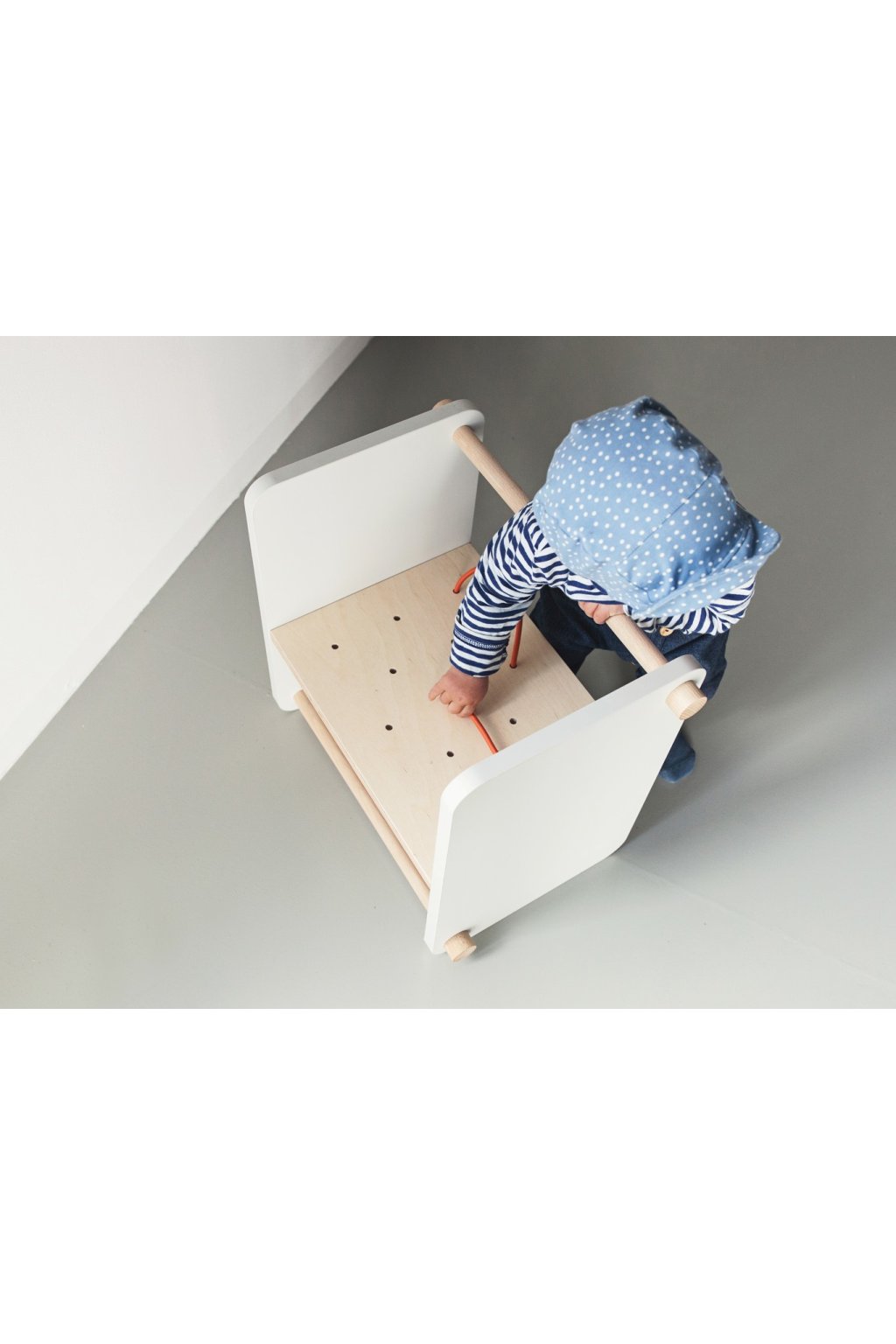 Multifunkční dětská stolička je navržena jako variabilní prvek pro sezení, stání i