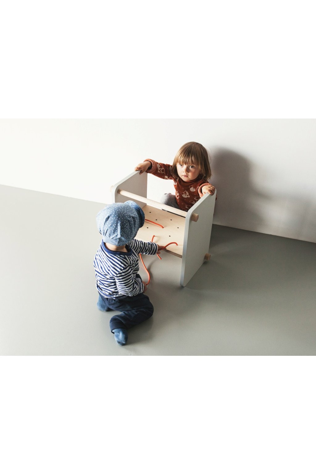 rozvoj jemné motoriky. Perforovaná deska umožňuje provlékání textilní šňůry a