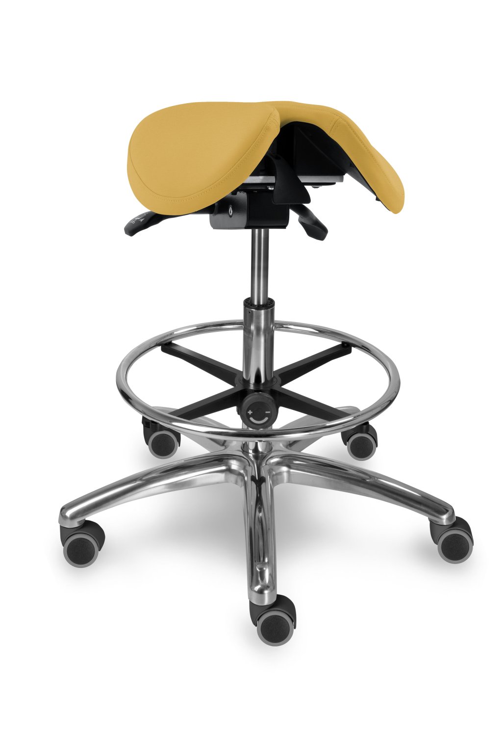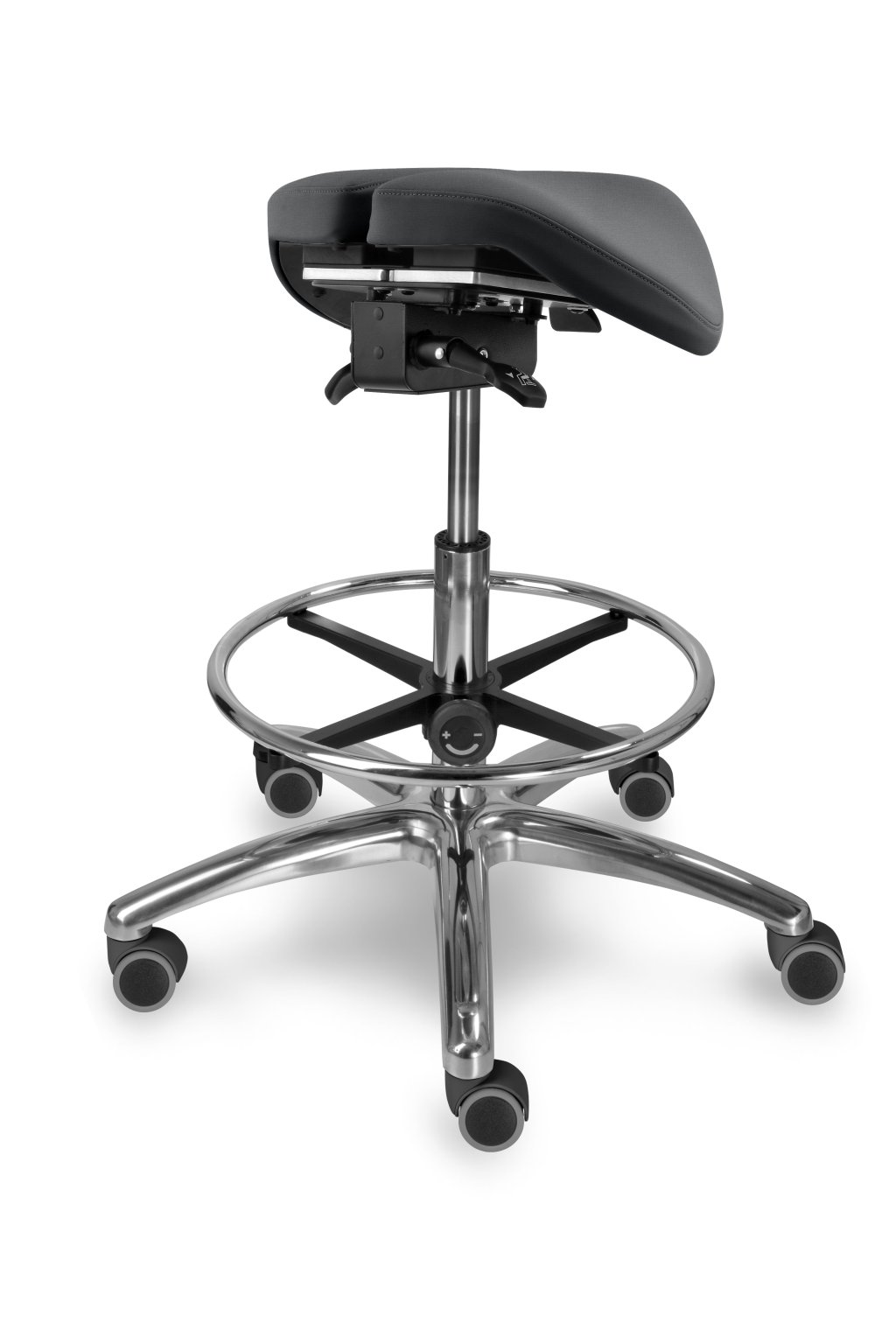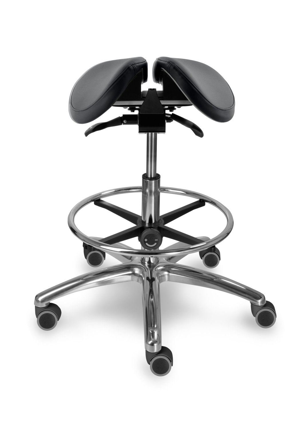 Speciální sedlová stolička s děleným tvarovaným sedákem. Vhodná pro ordinace, laboratoře, učebny a jiná pracoviště, snadná údržba