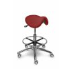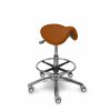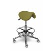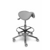 Vyšetřovací stolička s velkým tvarovaným sedákem "sedlo". Ergonomické stabilní sezení s možností náklonu sedáku až o 15 stupňů. Opora nohou výškově nastavitelná nezávisle na výšce sedáku.