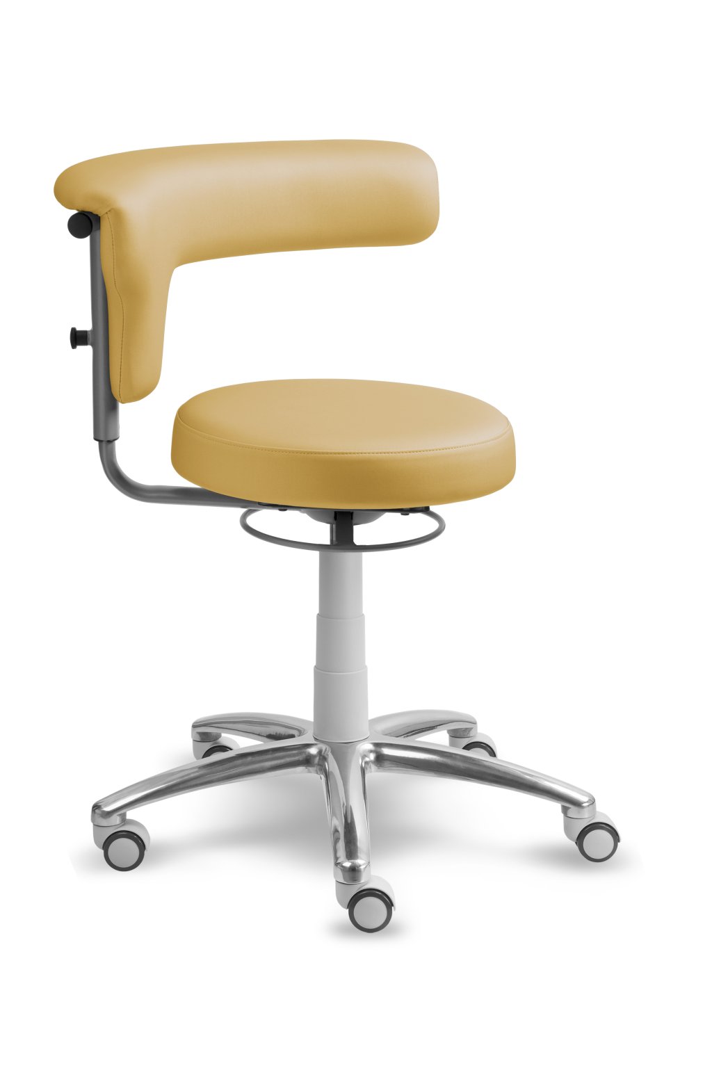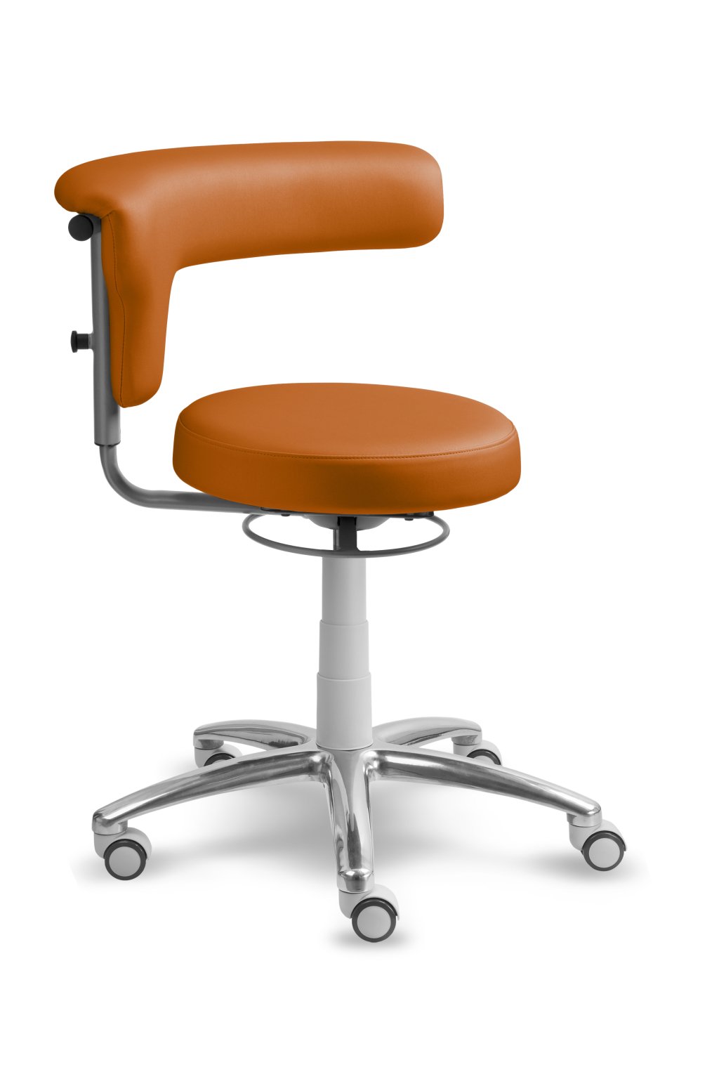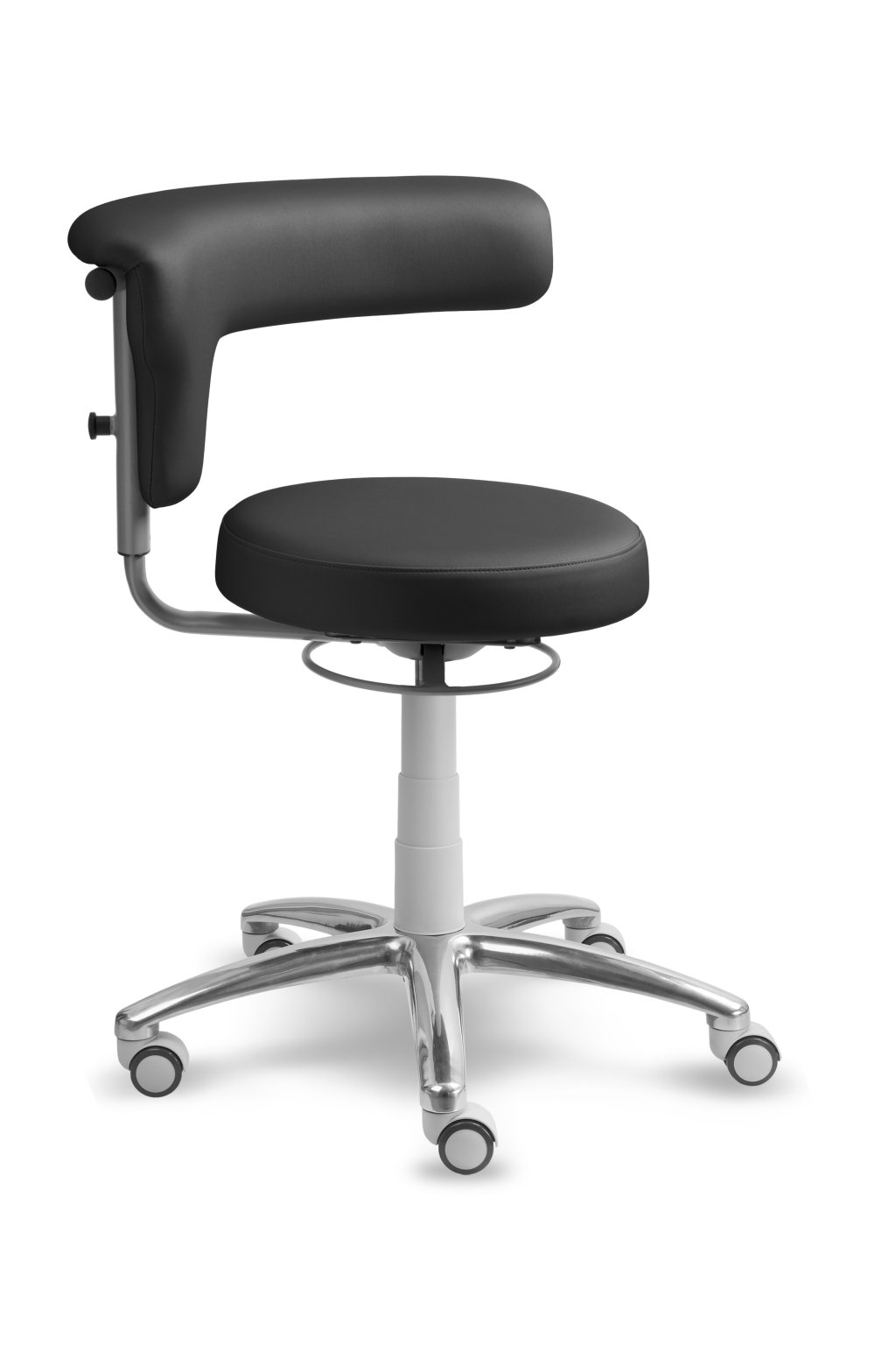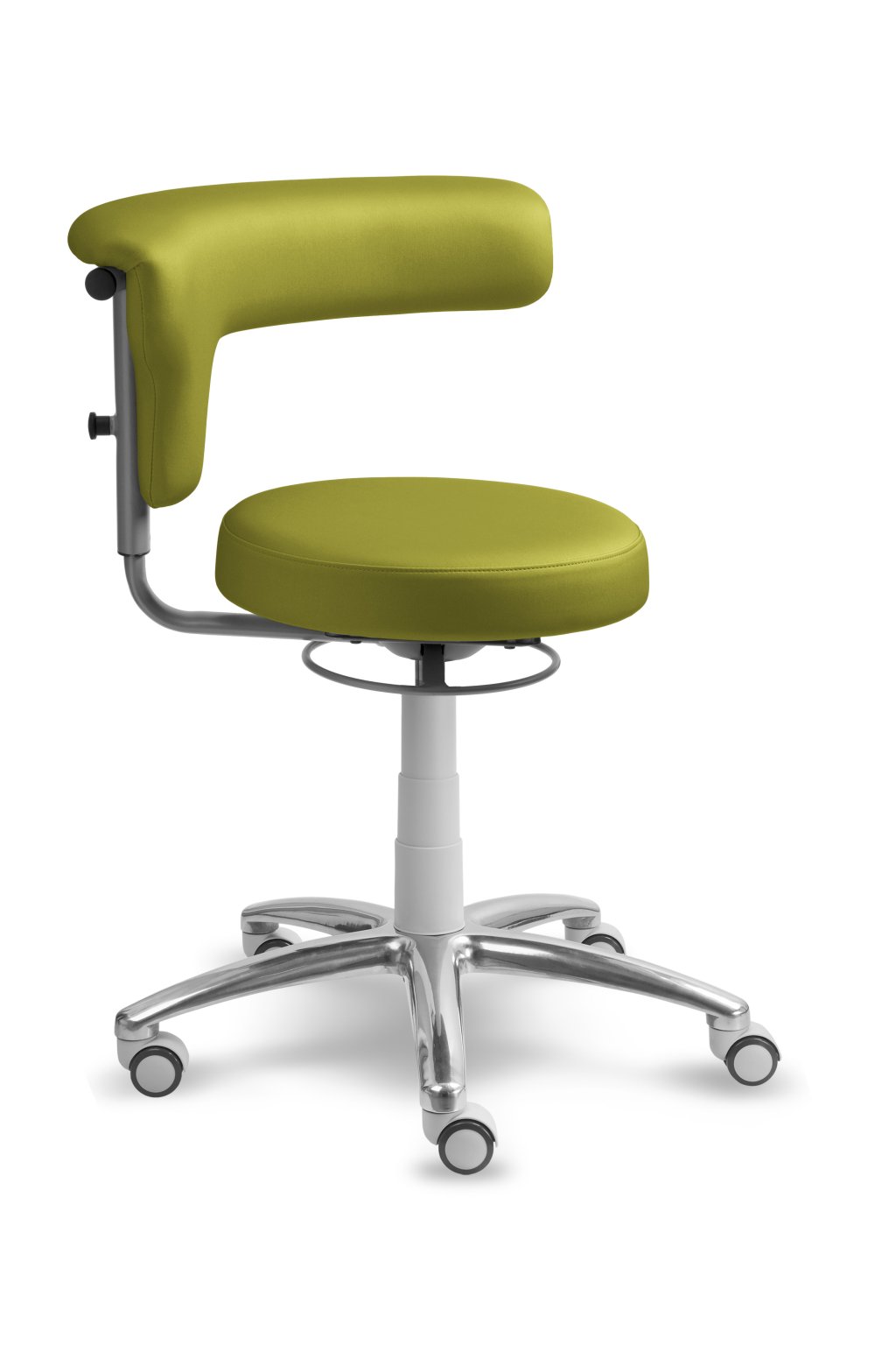 Speciální židle s opěrkou zad a loktů otočnou 360° nezávisle na pozici sedáku. Vhodná pro ordinace, laboratoře, učebny a jiná pracoviště, snadná udržba.